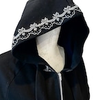 フード部分にティアラを模したラインストーンが装飾されているフーディー。