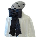 巻きバラとクッション感のあるリボンがインパクトのある大ぶりなブローチ。